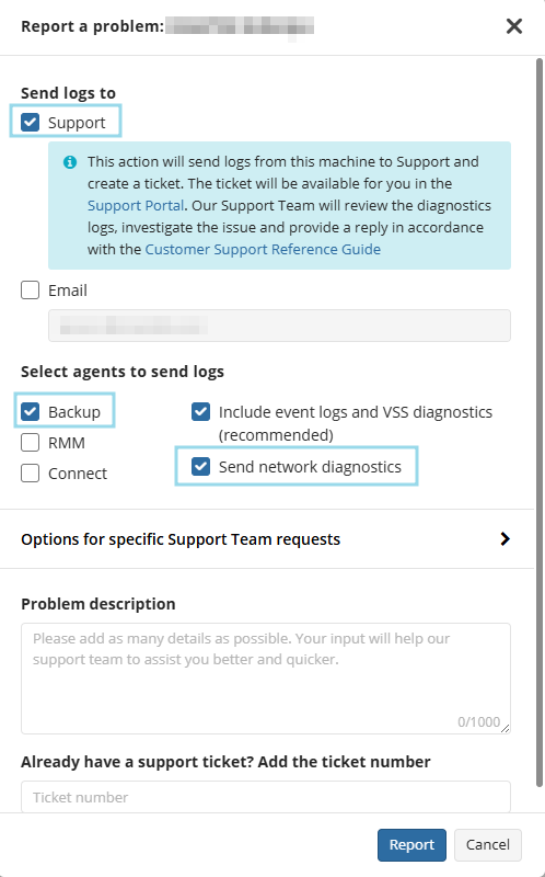Please be sure to have already enabled high logging in the Backup Agent settings and if you already have a Support Case opened, include the ticket number