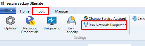 Using the Network Diagnostic Tool in the Backup Agent